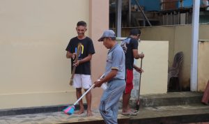 Mereka membersihkan lumpur, sampah, serta material terbawa banjir yang masih menutupi jalan dan halaman rumah warga. Aipda Sofyan Sawedu turut memimpin sejumlah personel di lapangan untuk memastikan proses pembersihan berjalan efektif.