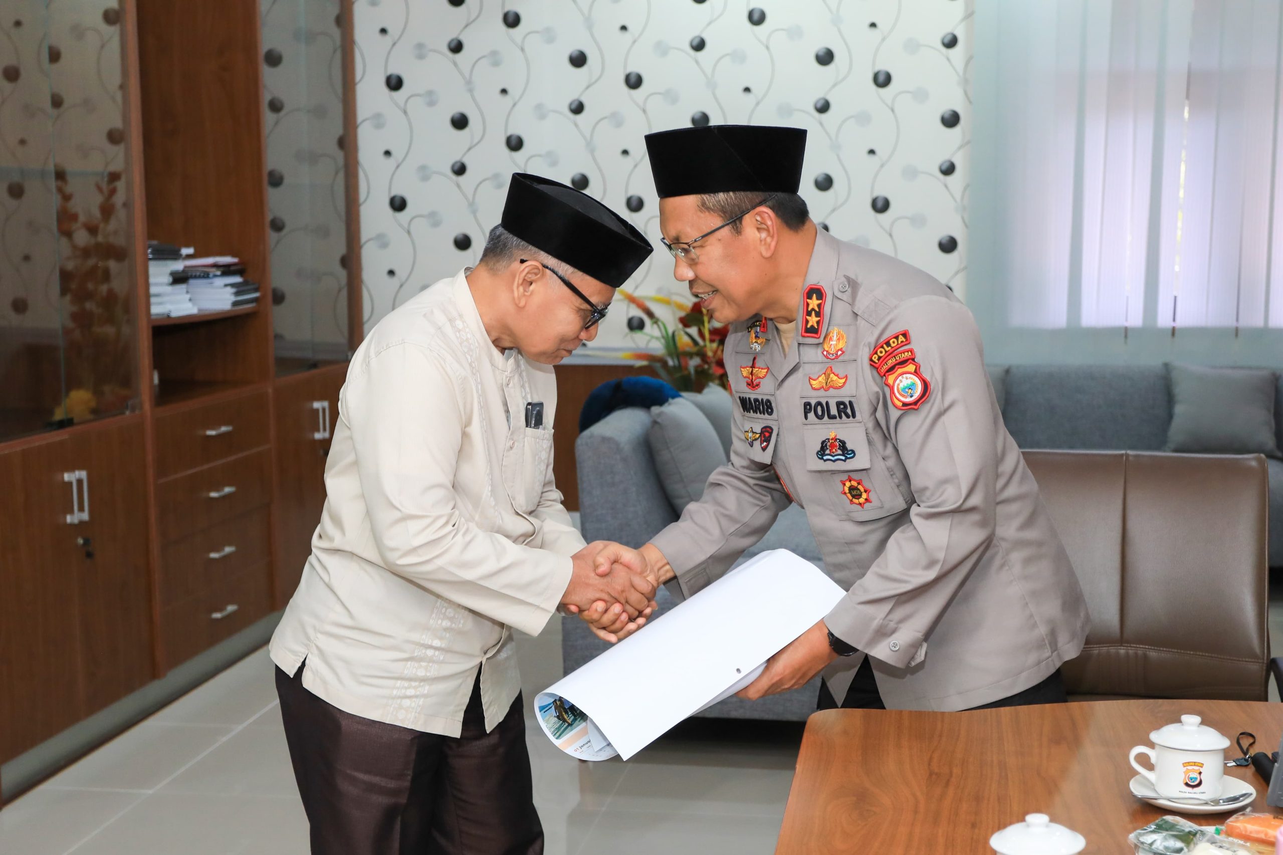 Kapolda Maluku Utara Irjen Pol. Drs. Waris Agono, M.Si menerima kunjungan silaturahmi dari Institut Agama Islam Negeri (IAIN) Ternate di ruang kerjanya pada Jumat, (4/7/2025).