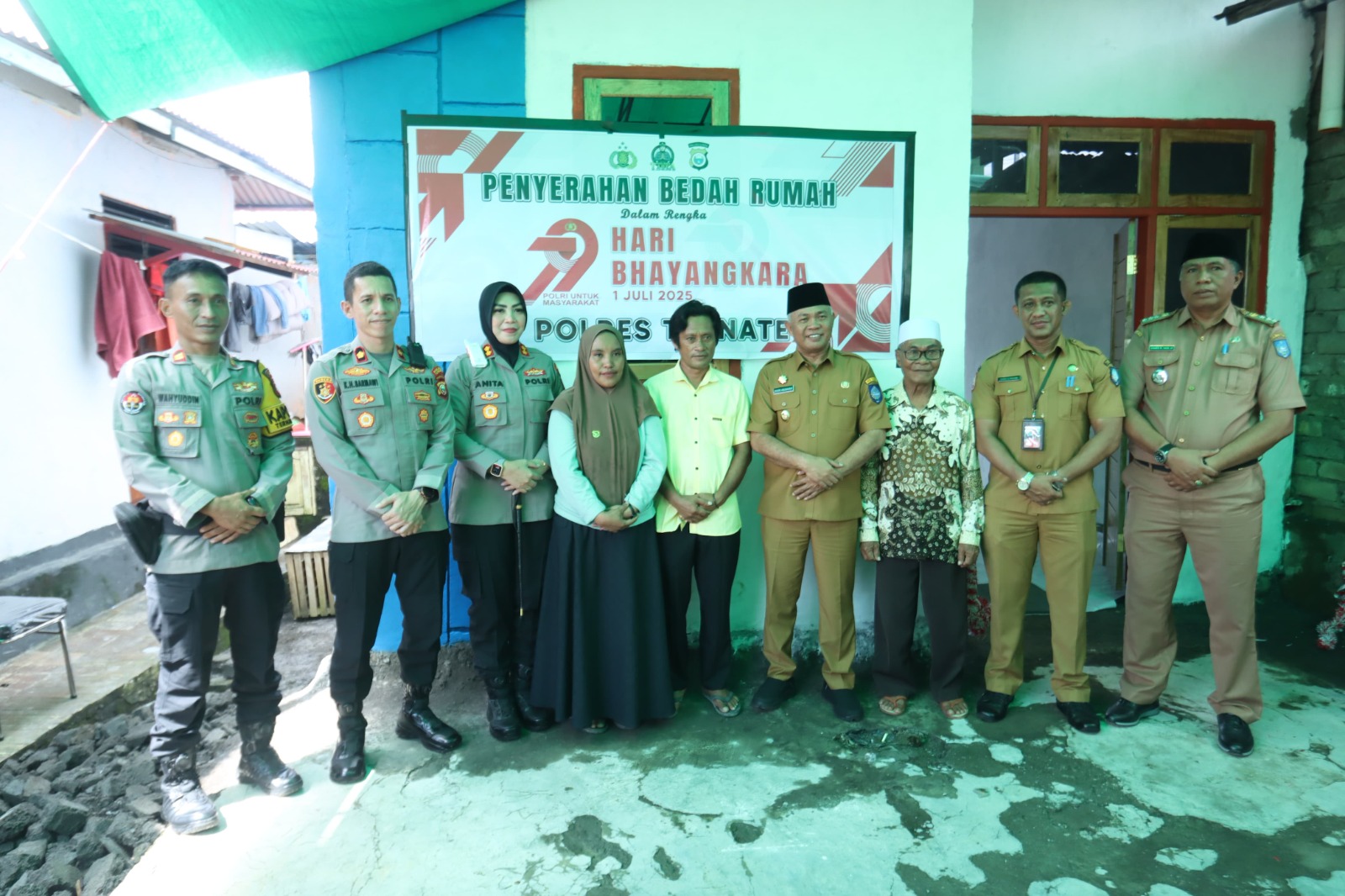 Menjelang peringatan Hari Bhayangkara ke-79, Polres Ternate menggelar kegiatan sosial penyerahan kunci bedah rumah kepada warga di Kelurahan Tubo, Kecamatan Ternate Utara, pada Senin (30/6/25).