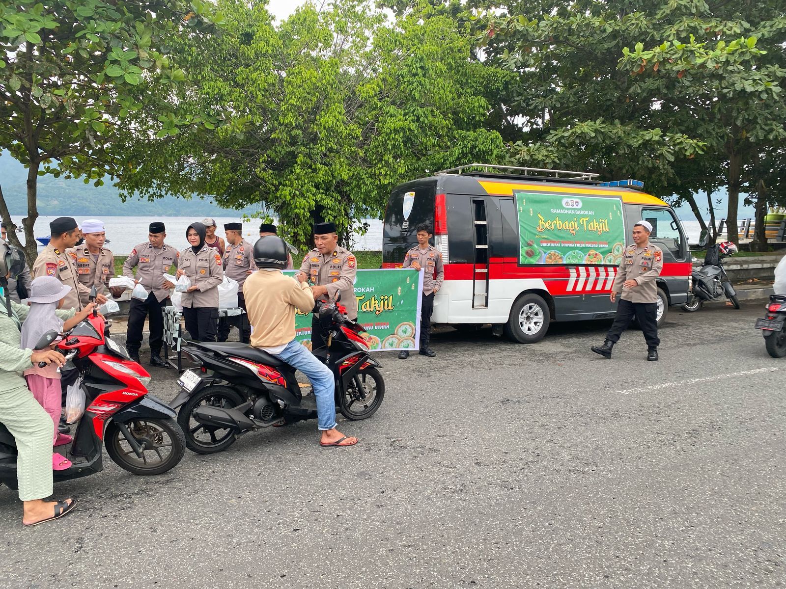 Dalam rangka mempererat hubungan antara Polri dan masyarakat, Direktorat Pembinaan Masyarakat (Ditbinmas) Polda Maluku Utara melaksanakan kegiatan pembagian takjil gratis bagi masyarakat menjelang waktu berbuka puasa, bertempat di Taman Kota Toboko, Kota Ternate. Senin (17/3)