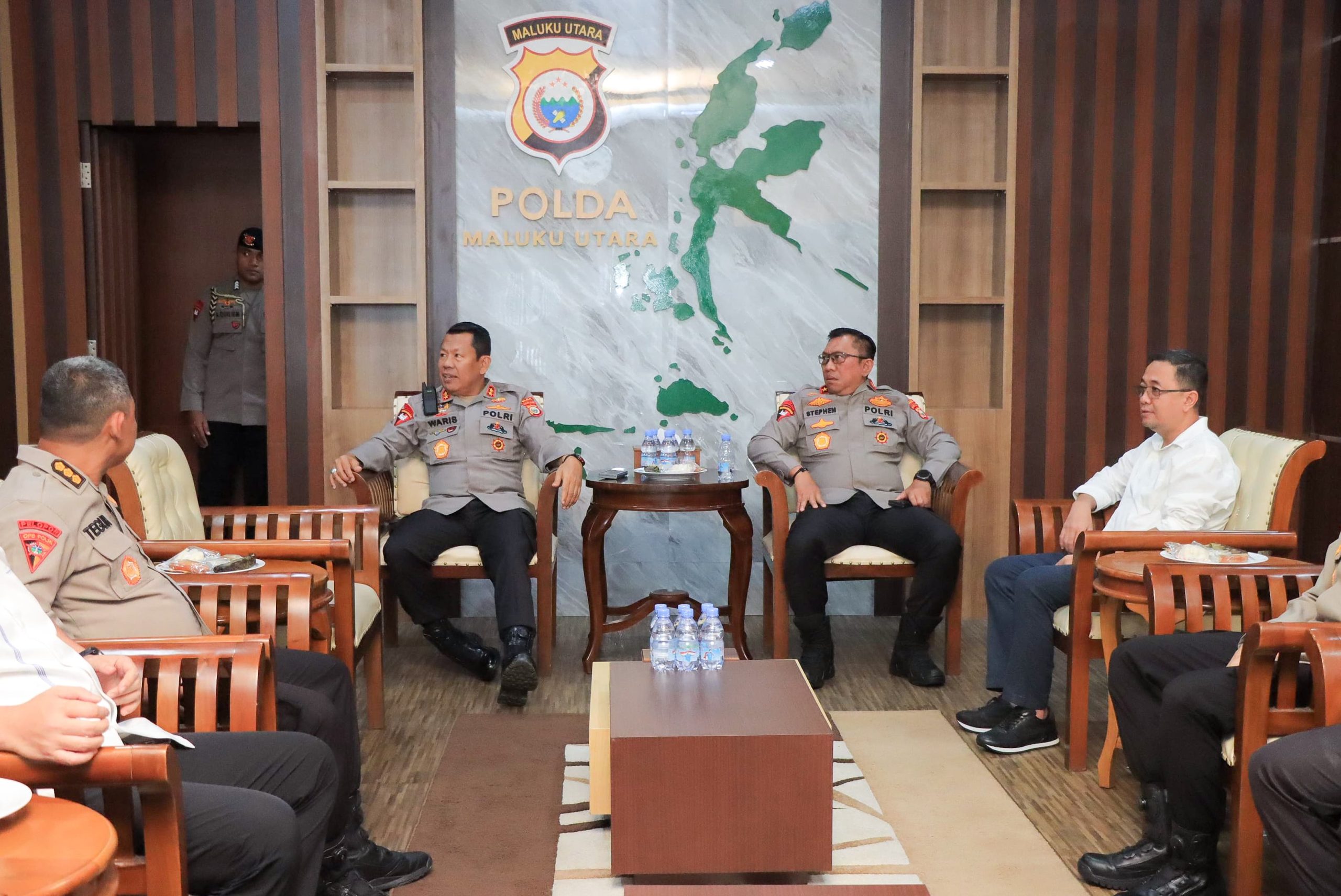 Kepala Kepolisian Daerah Maluku Utara, Irjen Pol. Drs. Waris Agono, M.Si, didampingi oleh Wakil Kepala Kepolisian Daerah Maluku Utara, Brigjen Pol. Stephen M. Napiun, S.I.K., S.H., M.Hum, menghadiri kegiatan Coffee Morning bersama Pejabat Utama Polda Maluku Utara, yang digelar dalam rangka mempererat koordinasi dan komunikasi internal jajaran kepolisian.