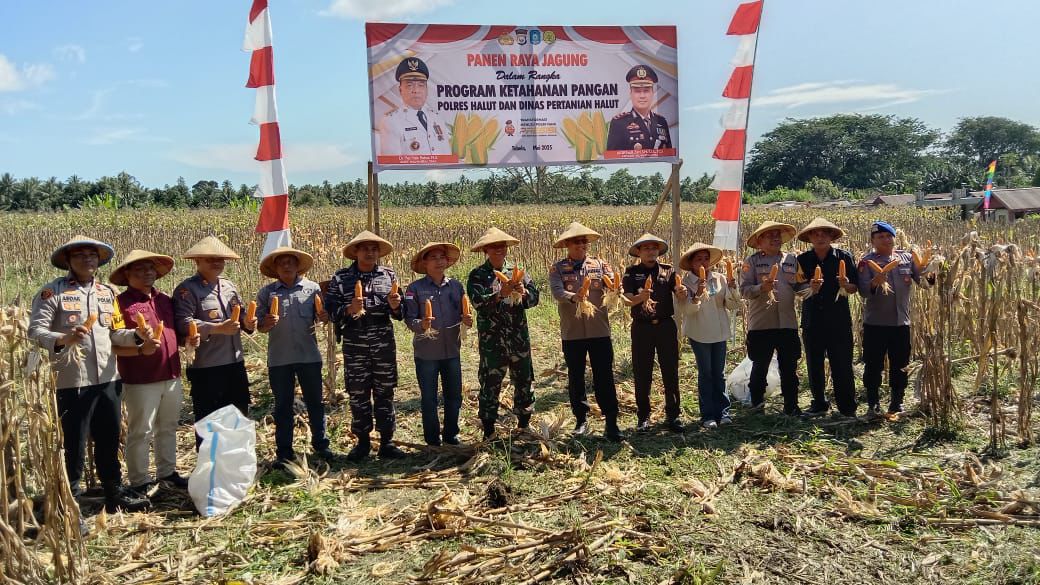 Polres Halmahera Utara (Halut) bersama Dinas Pertanian Kabupaten Halut sukses melaksanakan kegiatan Panen Raya Jagung di Desa Kali Pitu, Kecamatan Tobelo Tengah, Senin (12/5/2025). Kegiatan ini merupakan wujud dukungan terhadap program ketahanan pangan ASTA CITA Pemerintah Republik Indonesia di bawah kepemimpinan Presiden Prabowo, sekaligus mengawal arahan penggunaan 20% dana desa untuk sektor pangan.