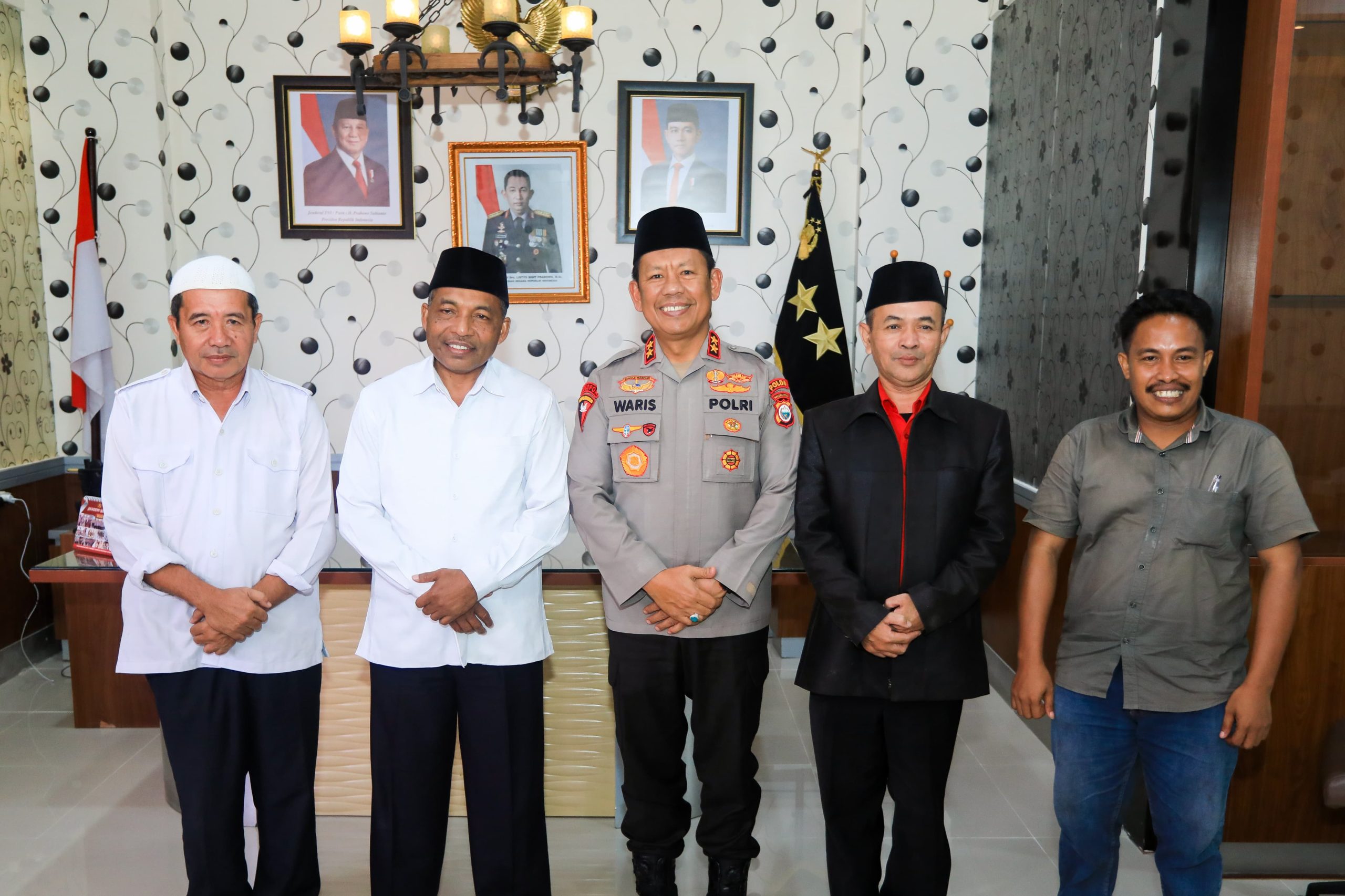 Kapolda Maluku Utara, Irjen Pol Drs. Waris Agono, M.Si menerima kunjungan silaturahmi dari Ketua Umum Majelis Ulama Indonesia (MUI) Provinsi Maluku Utara, Dr. Samlan Ahmad, di ruang kerjanya, Selasa (22/4). Pertemuan berlangsung dalam suasana hangat dan penuh keakraban.