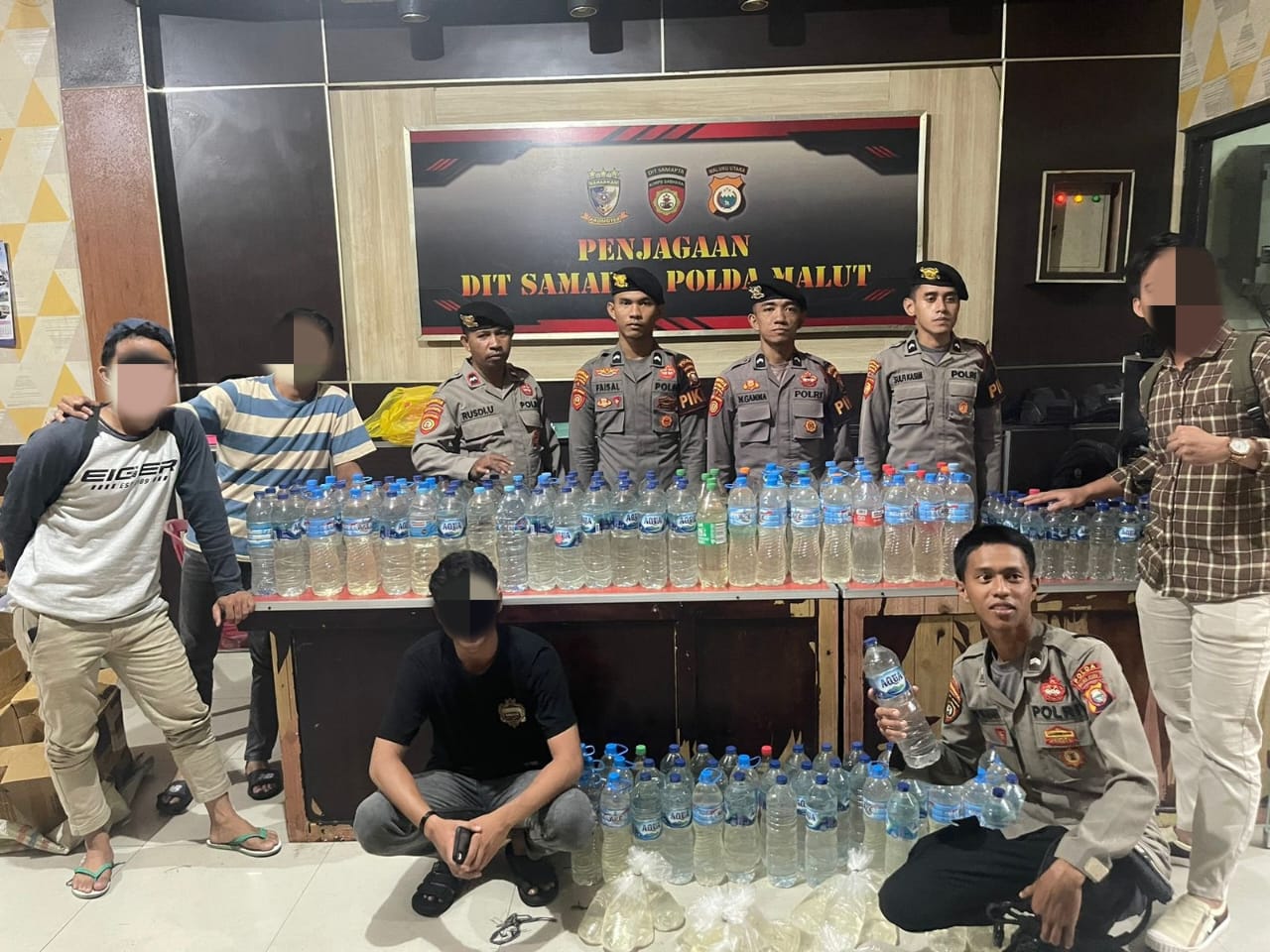 Hasil tangkapan operasi tersebut mencakup 57 botol Aqua ukuran 600 ml, 140 botol Aqua ukuran 1,5 liter, dan 30 kantong ukuran 600 ml, semuanya berlabel “Cap Tikus”.