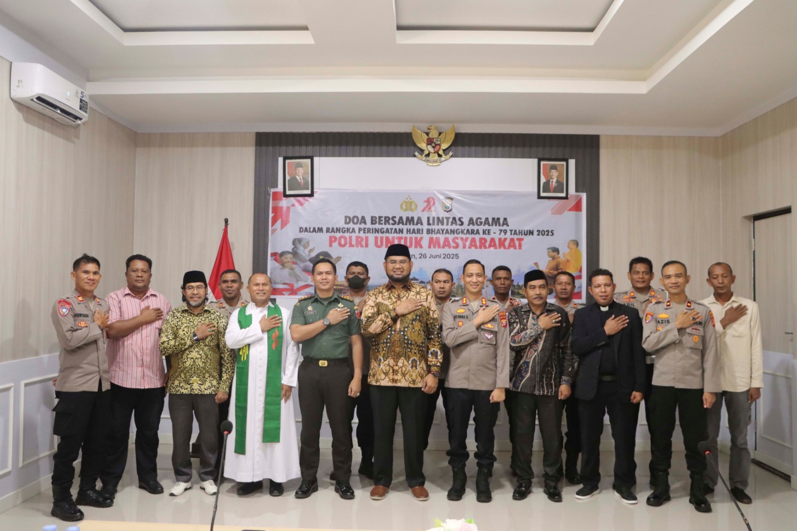 Dalam rangka memperingati Hari Bhayangkara ke-79 Tahun 2025, Polres Halmahera Selatan menggelar kegiatan Doa Bersama Lintas Agama yang berlangsung khidmat di Aula Vicon Polres Halmahera Selatan.Rabu (26/6/25).