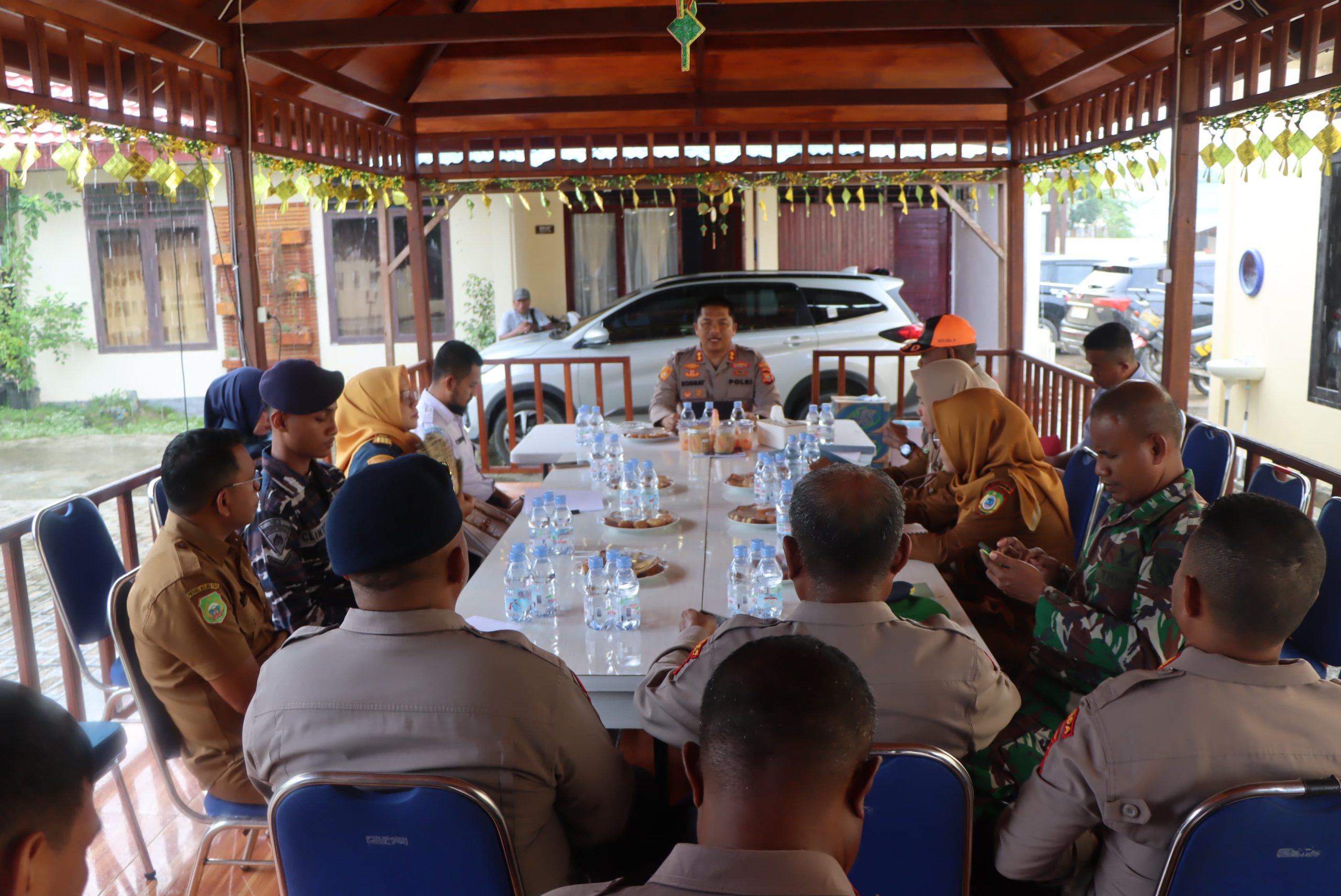 Rapat yang berlangsung di Gazebo Jaga Sula tersebut dipimpin langsung oleh Kapolres Kepulauan Sula, AKBP Kodrat Muh. Hartanto, S.I.K., dan dihadiri oleh Kepala Dinas Perhubungan, Chairullah Mahdi,Kepala Dinas Sosial, Umi Kalsum, S.Sos,Kepala BNPB, H. Buhari Buamona, S.A.P,Kepala UPTD Sahbandar Sanana, Adrian Tobogu,Kepala BMKG, Rahman Samsudin,Perwakilan Dinas Kesehatan, Ika Sampita Pawah,Pasi Ops Kodim 1510/Sanana, Kapten Inf. Harbun Buamona,Staf Dinas PUPR, Abdul Salah, S.A.P,Perwakilan Pos TNI AL, Serda Clinton,Danki Brimob Kompi C Yon Pelopor, IPDA Husni Kemhay,Serta para Pejabat Utama Polres Sula