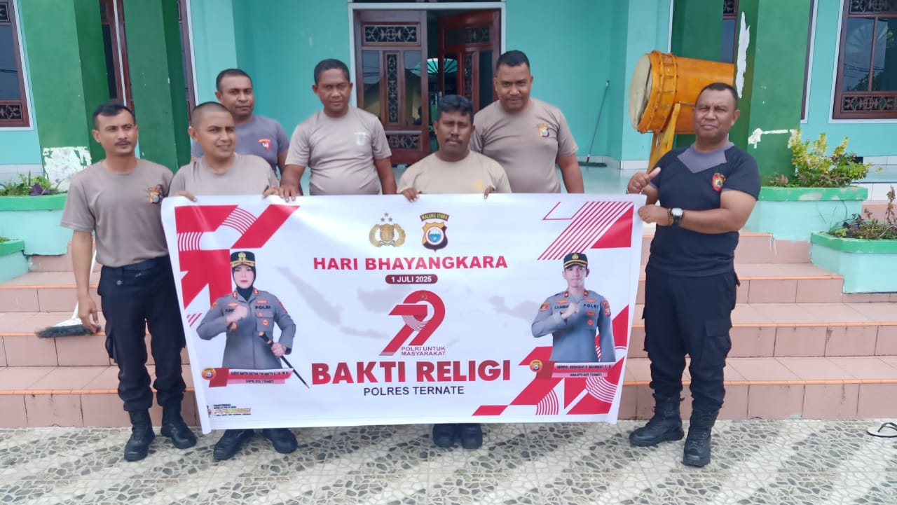 Dalam rangka menyambut Hari Bhayangkara ke-79, Polsek Pulau Ternate melaksanakan kegiatan bakti religi di Masjid Al’Qubais, Kelurahan Jambula, Kecamatan Pulau Ternate, pada Jumat (26/6/25).