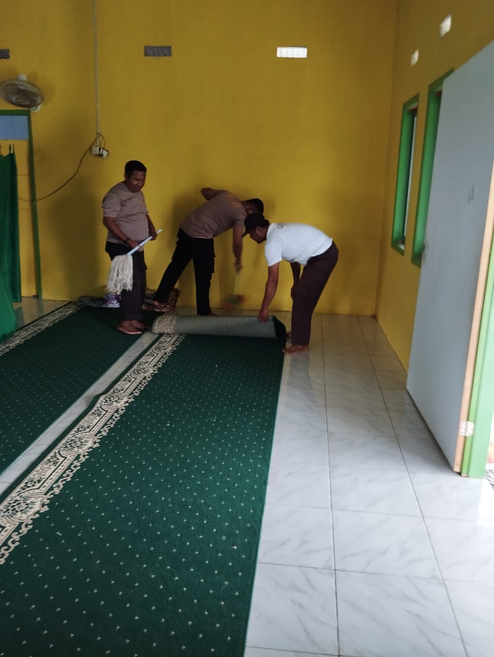 Adapun kegiatan yang dilakukan meliputi pembersihan halaman dan bagian dalam musalah, pemotongan rumput, pengepelan lantai, serta perapian fasilitas sekitar tempat ibadah.